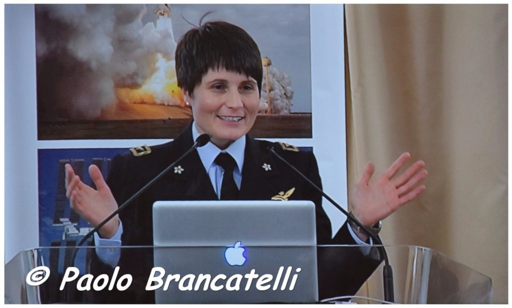 “Sono nata a Milano ma sono cresciuta in Trentino e già da piccolina sognavo di andare sullo Shuttle o l’Enterprise. Per farvi capire come nel mio caso non parlo solo di merito ma anche di circostanze fortuite, dopo la scuola ho frequentato ingegneria aerospaziale all’università tecnica di Monaco, ho studiato per un periodo in Francia e in Russia e mentre mi accingevo a laurearmi venne promulgata nel ’99 la legge sul servizio militare volontario femminile, cioè dal 2000 le donne italiane potevano partecipare ai concorsi per le forze armate e io nel 2001, appena laureata, ho fatto il concorso per frequentare l’Accademia Aeronautica, ricominciando tutto da capo: all’epoca mi diedero un po’ della matta, così diventai pilota militare. Di lì a poco uscì il concorso che mi permise di far parte del Corpo Astronautico dell’Agenzia Spaziale Europea insieme ad altri 5 giovani europei. Sono seguiti poi anni di addestramento in giro per il mondo, con gli americani della Nasa e i russi come principali partner ma anche contributi importanti europei con l’Agenzia Spaziale Europea e con l’Agenzia Spaziale italiana. La mia opportunità di andare nello spazio arrivò con la missione Futura, opportunità data dai contributi tecnologici italiani forniti alla Nasa. In meno di 9 minuti, a 28000 km/h, io e altri due colleghi eravamo in orbita a bordo del veicolo russo per raggiungere poi la gigantesca stazione spaziale internazionale, grande come uno stadio, che a me piace chiamare l’avamposto dell’umanità nello spazio. A bordo della stazione si è in 6 e all’inizio c’è molto da imparare per il fatto che tutto fluttua, all’inizio si passa più tempo nel ricercare le cose che si perdono che a lavorare, ad un certo punto ci si abitua, si diventa consapevoli con la coda dell’occhio che si lasciano galleggiare le cose intorno a sé e sembra di avere una “terza mano” a disposizione”.