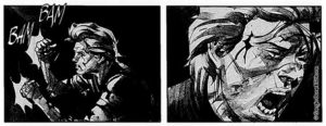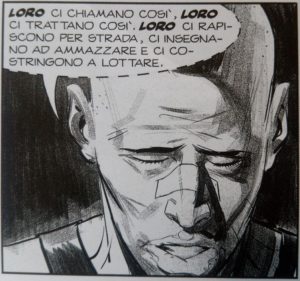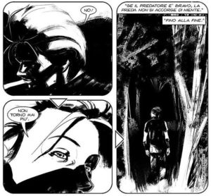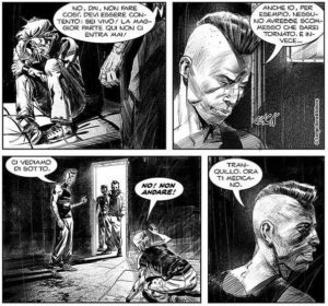 La violenza. E’ tantissima, come ho già detto, ma nel fumetto è spesso fuori campo, oppure nascosta tra una vignetta e l’altra, in sequenze che non vediamo quasi mai. Nemmeno in questo – grande Paola Barbato – c’è compiacimento, ne ricerca di complicità con il lettore. Mani nude è violentissimo e disturbante ma non è esaltazione della violenza, ne violenza offerta al lettore – come succede nei film splatter, e anche in qualche fumetto di genere – perché piace e fa vendere. A me non piace, anzi, confesso che sono piuttosto impressionabile. Inoltre, consiglio di leggere prima il fumetto perché l’ho trovato meno sconvolgente (anche se Paola Barbato, nell’intervista a Lucca, ha detto il contrario). Credo però che questo dipenda anche dal fatto che, avendo letto prima il libro, sono arrivato al fumetto, come dire, già vaccinato. In ultimo, nel libro ci sono alcune sequenze che non compaiono nel fumetto e che, secondo me, vi gusterete meglio leggendole dopo.