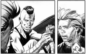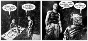 Le differenze tra la versione in prosa del 2008 e la versione a fumetti del 2017 non sono poche, sia per come si sviluppa la storia, sia per quanto riguarda i dialoghi. Ad esempio la motivazione sull’utilizzo del termine “cani”, che ho citato all’inizio dell’articolo, nel romanzo è in parte diversa. Eppure, rispetto a tante altre riduzioni a fumetti (tra cui la bella collezione Rivages/Casterman/Noir, per rimanere in tema) qui è la stessa autrice del romanzo a sceneggiarne la versione disegnata. Paola Barbato, nell’incontro a Lucca Comics, ha spiegato che, proprio perché i linguaggi di letteratura e fumetto sono molto diversi, ha preso la storia e l’ha riraccontata utilizzando soprattutto le immagini. Cosa che lei – sceneggiatrice storica di Dylan Dog – sa fare molto bene.