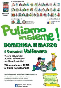 Valfenera- Spostata a domenica 25 marzo la giornata Puliamo Insieme! a causa delle previsioni meteo