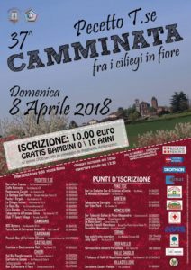 Appuntamento in piazza Roma alle 9:30 per la partenza della 37ma edizione della Camminata tra i ciliegi pecettesi. Storico appuntamento organizzato dalla Pro Loco locale, che prevede una passeggiata con tappe gastronomiche tra i sentieri della collina, ora colorati di un rosa delicato grazie alla fioritura dei ciliegi simbolo del paese. Le iscrizioni, già aperte in diversi punti vendita, saranno possibili fino alle 10 di domenica mattina nella piazza di partenza, il costo è di 10 euro per adulti e ragazzi (gratis per i bambini fino a 10 anni). Per l’occasione, grazie al gruppo locale degli Alpini, rimarrà aperta con orario prolungato la Chiesa di San Sebastiano, dove alcuni volontari faranno da guida ai visitatori. Per ragioni di sicurezza il percorso della camminata comporterà la chiusura di alcune strade al transito dei veicoli, tra queste: via Umberto I, via Circonvallazione, la centrale piazza Roma e le strade Ciattalina, Rosero, Virana, Valle San Pietro e Valle Sauglio. Il divieto di transito sarà attivo dalle 8:30 alle 14:30. Per informazioni è possibile contattare la Pro Loco Pecetto scrivendo a info@prolocopecetto.it oppure telefonando al numero 011-8608581.
