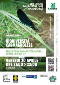 Il Territorio di Carmagnola ci offre un esempio molto interessante per accennare alla ricchezza della biodiversità della Pianura Padana, ai suoi cambiamenti nel tempo, alle minacce dovute agli sviluppi agricoli, industriali e urbanistici ed alla funzione delle aree protette per la sua conservazione. La presentazione, pur incentrata sugli animali ed in particolare su uccelli, mammiferi, anfibi e rettili, fornirà sicuramente molte informazioni e spunti da approfondire con la discussione e opportune letture.