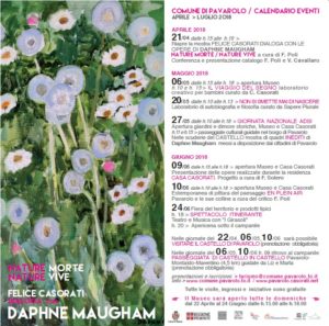 Sabato 21 aprile presso lo Studio – Museo Casorati di Pavarolo, il curatore della mostra Francesco Poli , dialogando con la storica dell’arte Veronica Cavallaro sulla figura e le opere di Daphne Maugham Casorati, ha dato ufficialmente inizio alla nuova stagione di riapertura dello Studio – Museo Casorati. Si potrà visitare quello che fu il luogo di lavoro e ispirazione di Felice Casorati e rivedere la mostra sulle opere di Daphne Maugham “Nature morte , nature vive” arricchita da un nuovo quadro della pittrice, la natura viva “Il Giacinto”. Come ormai da qualche anno, Pavarolo coglie l’occasione di questa riapertura per offrire un ricco programma di eventi collaterali e per far visitare e conoscere non solo il mondo di Casorati ma anche il suo bellissimo borgo collinare che tanto ha ispirato l’artista. Tra tutte le interessanti iniziative, spicca la prima edizione del Progetto Residenza d’artisti “Casa Casorati” di Francesca Solero. Si tratta di un progetto pilota, Artisti&Residenza.0, che dal 5 al 9 giugno darà la possibilità a giovani artisti selezionati di abitare le stanze della casa di Felice Casorati e lavorare negli stessi luoghi in cui sono nate alcune pietre miliari pittura italiana e internazionale. Gli artisti risiederanno e lavoreranno per alcuni giorni a Pavarolo, a Casa Casorati cogliendo l’ispirazione per una nuova creazione, il cui “germoglio iniziale” verrà presentato al termine del soggiorno; gli sviluppi e l’esposizione appartengono ad un momento successivo. Non meno rilievo significativi i tre appuntamenti su prenotazione previsti per le domeniche del 22 aprile, 6 maggio e 10 giugno, che offrono la visita del Castello di Pavarolo, una residenza privata e normalmente chiusa al pubblico. Il 6 Maggio e il 10 Giugno, partendo alle 9,00 è prevista una passeggiata tra le colline (4 Km circa) alla volta di Marentino, passando da Montaldo T.se , con visita al giardino delle erbe aromatiche di Casa Zuccala. (Su prenotazione). Questi e altri ancora sono gli appuntamenti e le possibilità per incontrare e conoscere un affascinante borgo della collina chierese che, seppure piccolo, sta dando dimostrazione di grandi capacità, inventiva e originalità nello sforzo di promozione del suo territorio e delle sue bellezze.