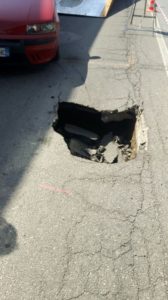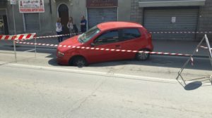 Trofarello – Voragine nel manto stradale inghiotte auto