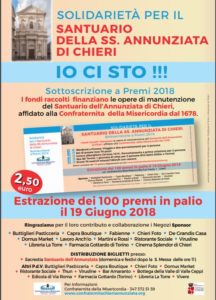 Sotto il Patrocinio del Comune di Chieri sono in distribuzione presso il Santuario e i negozi sponsor 2.000 biglietti della “Solidarietà per il Santuario”  a € 2,50  l’uno.