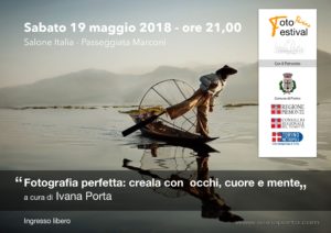 L’unico evento a pagamento del programma è il workshop “Scattare in luce naturale. Il metodo Mc Curry”, a cura di Ivana Porta, in programma sabato 12 maggio.