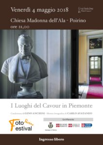 Venerdì 4 maggio, con una conferenza sul tema “I luoghi di Cavour in Piemonte”, prenderanno il via le manifestazioni comprese nel ricco programma del Poirino Foto Festival, patrocinato dalla Città Metropolitana di Torino e organizzato dal Circolo Fotografico Poirinese “Romolo Nazzaro”. L’appuntamento del 4 maggio è alle 21 nella chiesa della Madonna dell’Ala. Sono previste relazioni di Gino Anchisi (membro del direttivo dell’associazione Amici della Fondazione Camillo Cavour) e del professor Carlo Avataneo, insegnante, giornalista e fotografo, che esporrà le sue immagini raccolte nella mostra “Cavour e il Piemonte. I luoghi di una vita, le ragioni di un amore”.