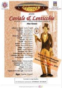 Il Centro Culturale “San Francesco del Carlo Alberto” è lieto di invitare allo spettacolo teatrale organizzato a scopo benefico, domenica 13 maggio alle ore 16.30, presso il Teatro Civico Matteotti,  in via G. Matteotti 1 a Moncalieri. La Compagnia Teatrale Gambrinus presenta la commedia “Caviale e lenticchie” di Scarnicci e Tarabusi, nella brillante versione di Nino Taranto.     Regia di Andrea Vespoli