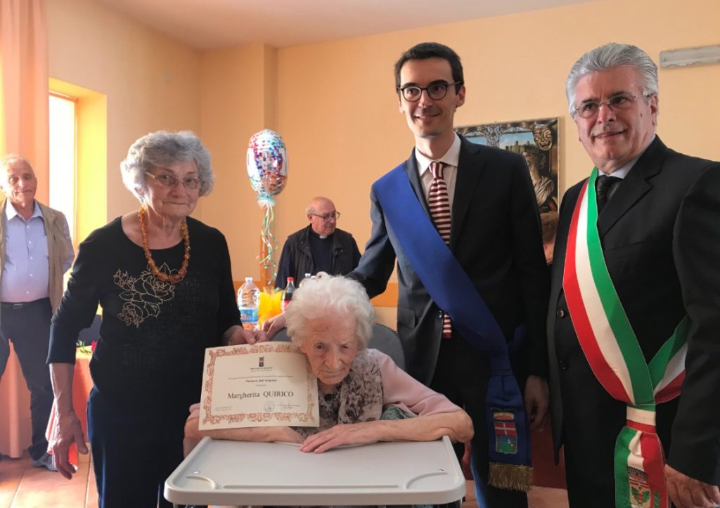 Il 24 aprile 2018 Margherita Quirico, nata a San Damiano d’Asti il 24/04/1918 da famiglia numerosa, ha festeggiato i suoi 100 anni attorniata da familiari, parenti ed autorita’ civili ed ecclesiastiche, oltre che dagli ospiti ed il personale della struttura dove Margherita e’ ospite a Canale.