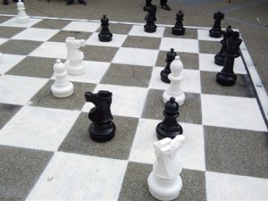 In occasione del secondo appuntamento con “Le domeniche in piazza”, questa mattina 13 maggio 2018 alle ore 10,00 è stata inaugurata la “scacchiera gigante” dipinta sull’asfalto dell’area pedonale in Piazza Giacomo Grosso, su idea e progetto dell’assessore Daniela Miron. A battesimo, sotto la guida di Celso Zuliani del Gruppo Scacchi Cambiano, alcuni presenti hanno rievocato la “partita immortale”, che venne giocata il 21 giugno 1851 a Londra dal tedesco Adolf Anderssen e da Lionel Kieseritzky, estone naturalizzato francese: partita che passò alla storia per la vittoria del tedesco che, pur sacrificando entrambe le torri e la donna, diede scacco matto all’avversario con i tre pezzi minori rimasti.