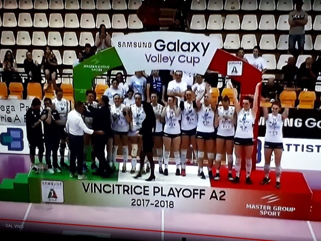 Meravigliosa prestazione delle ragazze del Fenera Chieri’76, che superano per 3-1 il Battistelli San Giovanni in Marignano al palasport di Rimini e conquistano una storica promozione in A1. La squadra di Secchi, in un crescendo che l’ha accompagnata in tutte le partite dei play-off, gioca una gara praticamente perfetta: domina il primo set (25-21), perde il secondo ai vantaggi (24-26), va sotto nel terzo parziale (anche -6) ma si riprende e si impone 25-21. Il quarto parziale è una cavalcata trionfale: 8-1 iniziale e poi vantaggio amministrato nonostante il ritorno delle romagnole, che arrivano a -3 ma poi si arrendono. Sul 25-20 si chiude set, partita e campionato. Con una promozione che all’inizio era un sogno e che, ad un certo punto della stagione, anche per il grave infortunio di Giuditta Lualdi, sembrava impossibile. Questa squadra ha dimostrato sul campo che nulla è impossibile quando c’è la grinta, il cuore, la voglia di stupire. Per lo sport chierese, una pagina di storia. (Gianni Giacone)
