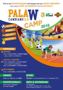 A Cambiano al PalaWojtyla di via Campi Rotondi 23 sono aperte le iscrizioni per il PalaW 2.0 Camp 2018, dove i ragazzi potranno vivere un periodo estivo all’insegna del proprio sport preferito, seguiti da uno staff qualificato SUISM e FSN per la tranquillità anche delle famiglie.