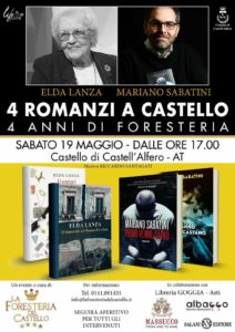 Elda Lanza e Mariano Sabatini saranno protagonisti, sabato 19 maggio, dell’incontro letterario “4 Romanzi a Castello” alla Foresteria di Castell’Alfero.