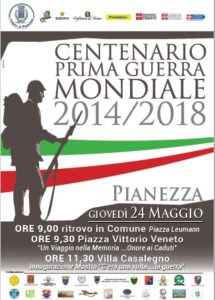 A PIANEZZA DAL 24 MAGGIO AL 9 GIUGNO LE COMMEMORAZIONI DEL CENTENARIO DELLA GRANDE GUERRA