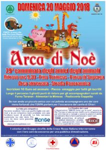 L’iscrizione è aperta a tutti gli animali docili e di buon carattere … dal grillo al pesciolino rosso, purché non si arrechi loro sofferenza. La quota d’iscrizione (10 Euro) è prevista solo per l’animale partecipante, mentre è libero il numero degli accompagnatori. Gli iscritti riceveranno un pacco gara con prodotti utili ai propri animali. Nel corso degli anni, l’Arca di Noè, da vera e propria competizione, si è trasformata in una grande festa che vede protagonisti animali quali gatti, cani, conigli, furetti, asinelli, pesciolini, etc. I più numerosi sono i cani e con l’intento di sensibilizzare il più possibile le persone sulle problematiche relative all’abbandono, ai maltrattamenti e all’adozione, il canile di Chieri, in collaborazione con la LIDA (Lega Italiana per la Difesa dei diritti degli animali) saranno ospiti della nostra manifestazione e metteranno a disposizione alcuni cani tanto bisognosi della compagnia di persone diverse da quelle che li hanno abbandonati. Queste tenere bestiole saranno volentieri disponibili ad accompagnare in passeggiata coloro che non possiedono un animale proprio, con la speranza di riuscire a trovare…chissà… un nuovo amico per sempre, a fine giornata. Quest’anno siamo lieti di ospitare la partecipazione dell’Associazione “AMI.CO. – Amici per la Coda”, esperta di Pet Therapy ed educazione cinofila, che sarà a disposizione per informazioni e consigli e curerà le giostre di abilità a cui potranno partecipare gli animali. L’associazione l’obiettivo di migliorare la qualità di vita delle persone promuovendo un modello di relazione cane- uomo, e sono affiancati dalle organizzazioni “IAA” (Interventi Assistiti con gli Animali) e da veterinari comportamentalisti certificati dal “CRN” (Centro di Ricerca Nazionale delle Tre Venezie). Tutti gli educatori cinofili sono riconosciuti ENCI e FISC. Durante la manifestazione, inoltre, i volontari del gruppo cinofilo della Croce Rossa Italiana interverranno per una pubblica dimostrazione con i cani da soccorso. Certi di offrire a tutti i partecipanti (animali e non) la possibilità di vivere un’esperienza molto divertente, socializzante ed educativa, vi aspettiamo numerosi!