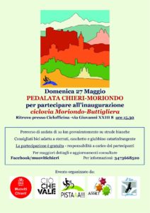 Domenica 27 maggio si inaugurerà il tratto ciclo-pedonale Moriondo-Buttigliera. “Sarà la prima opera tangibile del progetto “Pistaaa!” – dice Giovanni Bosco, presidente di MuovitiChieri – e potrà diventare un punto di riferimento per lo sviluppo del turismo a piedi e in biciIn particolare, sarà l’occasione per dimostrare agli amministratori locali che è possibile realizzare opere simili, considerando gli elementi principali che ne hanno reso possibile l’attuazione: – intervento a basso costo, – recupero strade bianche esistenti- coinvolgimento realtà locali (un coltivatore ha messo a disposizione il suo terreno)- collaborazione tra comuni.”