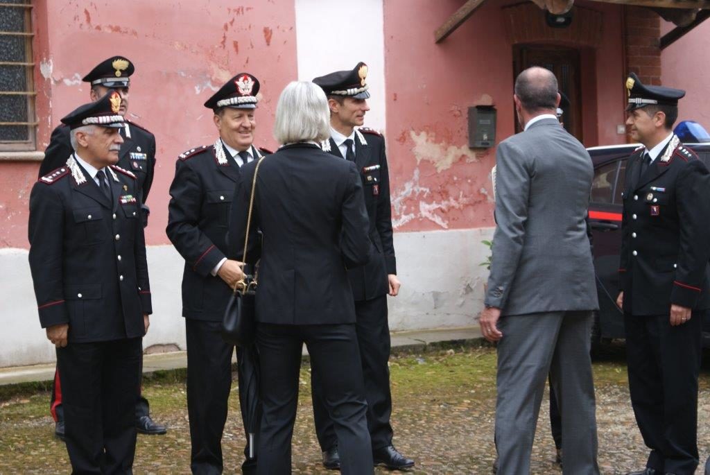 Ieri mattina a Poirino, presso la tenuta di Ternavasso il Vice Comandante Generale dell’Arma dei Carabinieri, Generale di Corpo d’Armata Riccardo Amato, il Comandante della Legione CC “Piemonte e Valle d’Aosta”, Generale di Divisione Mariano Mossa, il Comandante Provinciale dei Carabinieri di Torino, Colonnello Emanuele De Santis, accompagnati anche dal Comandante della Legione CC Liguria, Generale di Brigata Paolo Nardone, hanno reso omaggio alla tomba del Primo Comandante Generale dell’Arma dei Carabinieri, il Marchese Giuseppe Alessandro Thaon di Revel e di Saint Andrè. Erano presenti anche il Sindaco di Poirino Angelita Mollo, il Comandante della Compagnia di Chieri Capitano Luigi Di Puorto, il Comandante della Stazione CC di Poirino Mar. Capo Dario Mello, il presidente della locale Sezione ANC Avv. Piergiorgio Chiara, nonché altri rappresentanti della giunta comunale e dell’Arma in servizio e in congedo. Dopo la breve cerimonia gli Alti Ufficiali sono stati ospitati presso la tenuta del marchese Paolo Vandini Thaon di Revel, discendente diretto del Primo Comandante dell’Arma dei Carabinieri. Poi, nel primo pomeriggio il Gen. Amato ha effettuato una breve visita a Poirino presso il Giardino intitolato all’Arma dei Carabinieri e ammirato il monumento al Carabiniere, che domina al centro della predetta piazza.