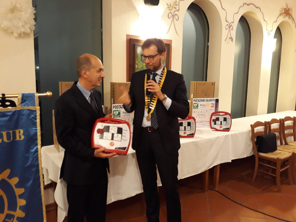 In una serata conviviviale a Riva, alla presenza del governatore distrettuale Mario Quirico e del direttore sanitario dell’Asl TO5, Bernini, il presidente del Rotary Club Chieri, Arduino, ha consegnato ai sindaci di Chieri, Santena, Poirino e Riva presso Chieri quattro defibrillatori acquistati con i proventi di un service rotariano svolto nel corso del 2017-18 e un contributo di 1000 euro alla presidente dell’associazione ASSEA onlus, Clotilde Trinchero, impegnata nel contrasto al bullismo nelle scuole della zona con la pet therapy.