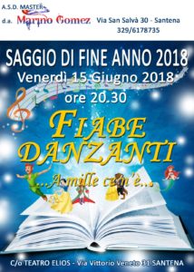 Cresce l’entusiasmo all’Accademia di Danza Marino Gomez per il saggio di fine anno accademico in programma venerdì 15 giugno 2018 alle ore 20,30 al Teatro Elios di Via Vittorio Veneto 31 a Santena. Verranno portate in scena le “Fiabe Danzanti… A mille ce n’è…”, che rievoca il ritornello che chi è stato bambino negli anni ’70 e ascoltava le fiabe sonore dal mangiadischi di plastica arancione non può non ricordare!