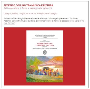 Sabato 7 luglio, alle ore 16, a Usseglio presso l’albergo Grand’Usseglio, Angelo Mistrangelo e Gian Giorgio Massara presenteranno per la prima volta in valle il volume “ Federico Collino tra musica e pittura (1869-1942).”