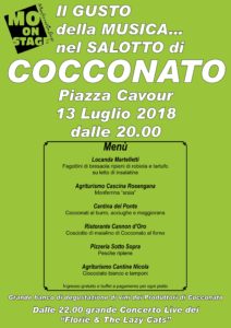 La rassegna Monferrato On Stage – evento dalla doppia anima, musicale e gastronomica, per la valorizzazione del Monferrato – fa tappa a Cocconato domani, venerdì, 13 luglio.