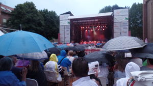 La pioggia è arrivata, ospite inattesa, mezz’ora prima del concerto più atteso di Astimusica 2018. Ombrelli aperti in ogni ordine di posti nella piazza gremita da un pubblico eterogeneo che abbraccia tutte le generazioni. Nessuno ha intenzione però di arrendersi alle avverse condizioni metereologiche e la tenacia viene premiata: per fortuna la nuvola passeggera si allontana in tempo per l’inizio puntuale del concerto.