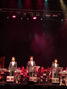 Il concerto ha visto alternarsi sul palco i tre tenori in formazione completa e in assolo. Tra un’aria e l’altra hanno spesso scherzato con il pubblico, prendendosi in giro a vicenda. Il più loquace Ignazio Boschetto con Piero Barone e Gianluca Ginoble a fare da spalla alle sue battute sconclusionate. Anche Massimo Cotto è stato preso di mira dal palco. A lui i tre cantanti hanno dedicato un “Tanti auguri” per il suo compleanno anche se non era affatto il giorno in cui compiva gli anni.