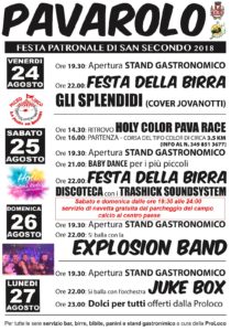 Pavarolo: festa patronale di San Secondo 2018 🗓