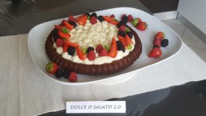 Per il mio compleanno (che cade nella settimana di Ferragosto…) sono solita allestire una torta alla frutta insieme a un secondo dolce a base di crema. Tanto è vero che fin dal periodo della mia adolescenza preparavo sempre una crostata di frutta fresca e il classico tiramisù. Quest’anno, complice il poco tempo a disposizione, ho pensato di unire in uno stesso dolce gli ingredienti che mi piacciono di più, proponendo alla mia famiglia una crostata a base morbida al cioccolato fondente (con percentuale almeno almeno al 72%…per chi, come me, ama il cioccolato amaro…), decorata con i frutti di bosco e addolcita da una crema di origine giapponese, anziché con la pasticcera.