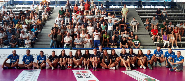 Spazio quindi ai saluti, a cominciare dalle atlete. Dodici le giocatrici presenti: le palleggiatrici Sara De Lellis e Chiara Scacchetti, i liberi Giulia Bresciani e Giorgia Caforio, le centrali Yasmina Akrari, Samantha Middleborn e Anzhelika Barysevic, e le attaccanti Giulia Angelina, Elena Perinelli, Barbara Dapic, Gyselle Silva De La Caridad ed Elisa Tonello. Unica assente, la schiacciatrice Odina Bayramova: impegnata con la nazionale azera nella preparazione dei campionati mondiali, si unirà alle sue nuove compagne a ottobre. È toccato poi allo staff, composto dall’allenatore Luca Secchi, dal secondo allenatore Marco Sinibaldi, dall’assistente allenatore Marco Rostagno, dallo scoutman Emanuele Aime, dal preparatore atletico Davide Stocco, dai fisioterapisti Gianfranco Cumino e Giorgia Valetto, dai medici Gippi Ronco, Gianfranco Feyles e Francesco Lancione, e dal team manager Alberto Cento. Infine, tutti insieme sotto la curva, per il primo abbraccio della nuova stagione con la famiglia biancoblù.