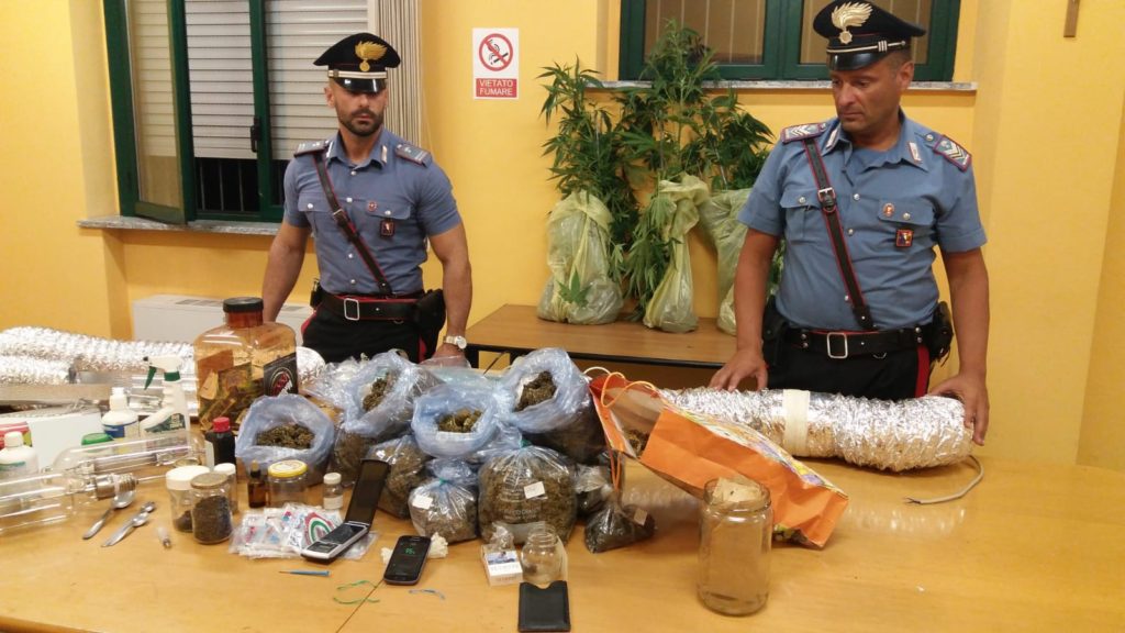 Lo scorso 29 agosto alle 22 i carabinieri hanno arrestato Federico D., 40 anni, residente a Chieri, per detenzione di droga. In casa i militari hanno trovato 10 buste in cellophane contenente marijuana per un peso complessivo di 2 Kg nonché 8 piante di cannabis indica in fase vegetativa, due serre munite di lampade UVA e relativo sistema di areazione, concimi chimici e antiparassitari impiegati per la coltivazione delle piante, un bilancino di precisione e telefono cellulare utilizzato per l’attività di spaccio. L’uomo è stato collocato ai domiciliari.