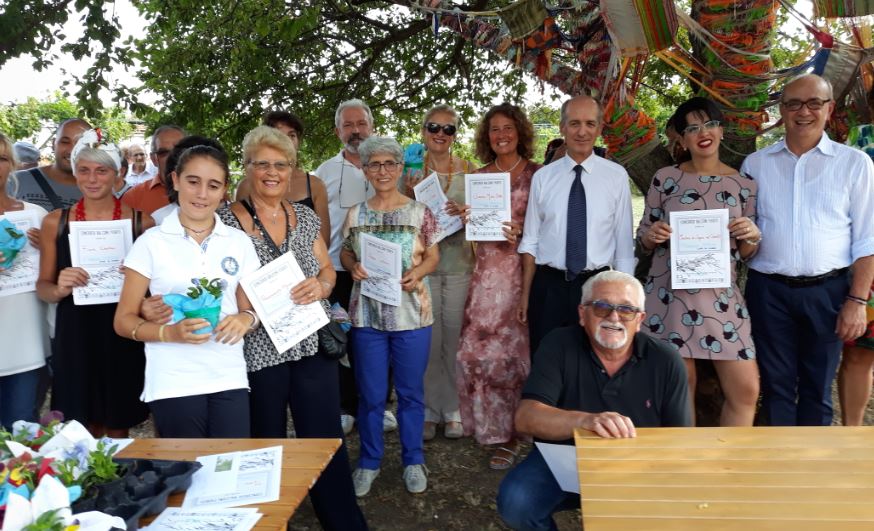 Con la premiazione dei vincitori si è chiusa la prima edizione del concorso “Balconi fioriti”, che ha visto la partecipazione, nelle diverse categorie (Balconi, giardini, cortili, dehors) di un gran numero di amanti del pollice verde, a Chieri e in tutto il chierese. L’associazione chierese Parco Turriglie ha sdoppiato la premiazione: prima nella propria sede per i vincitori della classifica generale e poi nel riqualificato prato della Rocchetta a Porta Gialdo per vincitori di Chieri. Nella foto, il gruppo dei premiati con il sindaco Martano e l’assessore alla partecipazione Massucco.