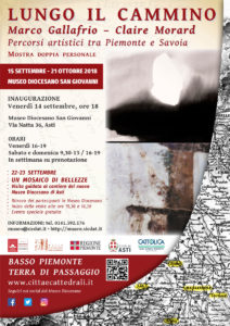 Venerdì 14 settembre alle ore 18 presso il Museo Diocesano San Giovanni (via Natta 36), sarà inaugurata la mostra doppia personale “Lungo il cammino. Marco Gallafrio – Claire Morard: percorsi artistici tra Piemonte e Savoia”, con l’esposizione di opere degli artisti Marco Gallafrio, torinese, e Claire Morard, di Annecy (Savoia). Il viaggio è da sempre metafora del cammino dell’uomo, sinonimo di migrazione, esodo, percorso di conoscenza nell’avanzare incessante alla conquista di nuovi traguardi di civiltà. Partendo da queste molteplici chiavi di lettura s’instaura lo scambio dialettico tra due autori del contemporaneo, Marco Gallafrio e Claire Morard, che in questi tempi molto confusi e costellati di drammatiche esperienze migratorie si trovano a vivere in luoghi intrisi di esperienze multiformi, dove convivono i segni di importanti scambi materiali e profonde esperienze spirituali; i loro atelier si trovano lungo il suggestivo percorso che portava mercanti e pellegrini a percorrere l’Europa da Nord a Sud. Era la via Francigena: lungo questa tratta i commerci segnarono dal Basso Medioevo in poi l’evoluzione della società chiusa, ma sullo stesso cammino si coltivavano anche speranze salvifiche per l’anima. Da questi presupposti di un vissuto secolare si sublima attraverso l’arte dei due autori l’idea di “viaggio”. Marco Gallafrio è nato a Torino nel 1964. Diplomatosi in Arti grafiche, ha lavorato come designer e illustratore pubblicitario. L’espressività cromatica di Gallafrio si costruisce su campiture di consistente spessore materico: l’ampia dimensione dei quadri, in una scelta modulare di 120 cm. per 120 cm., si pone come avvio di ricerca, in cui si coltiva, nella virtualità degli sbalzi di superfici e di alternanze tonali, l’acquisizione del sé. Dalla gestualità chiaramente leggibile nelle sue opere si evince la sensibilità dell’autore nel saper coniugare colore e materia, connubio da cui affiora l’evolversi di un viaggio gestito da variazioni timbriche emozionali.