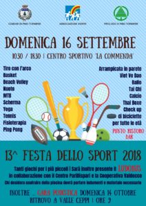 Si terrà domenica 16 settembre la tredicesima edizione della Festa dello Sport del Comune di Pino Torinese.