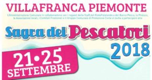 Dal 21 al 25 settembre 2018 il Comune di Villafranca Piemonte in collaborazione con la Pro Loco, lo staff del RistoPalatenda, il Banco Pesca, il Gruppo Comunale di Protezione Civile, le associazioni e i comitati comunali, organizza la tradizionale Sagra dei Pescatori con un ricco programma di eventi, mostre e concerti. La manifestazione, patrocinata dalla Città metropolitana di Torino, ricorda l’importanza di un mestiere che, nei secoli passati, è stato uno delle principali fonti di sostentamento per la popolazione villafranchese. Affiancati agli appuntamenti consolidati negli anni quali la degustazione di specialità gastronomiche della tradizione, il Banco pesca e il ballo a palchetto, non mancheranno le novità che prevedono lo spettacolo pirotecnico e musicale sul fiume Po di sabato 22 settembre a partire dalle ore 22. Domenica 23 Villafranca ospita anche il raduno di moto e auto d’epoca, l’area comics sotto l’ala comunale, il mercatino degli hobbysti e dell’antiquariato, l’allestimento della “scola d’na volta” e i giochi con l’Associazione Dimensione Arcana di Moretta e Gli Amici dell’Asilo Infantile di Villafranca Piemonte.