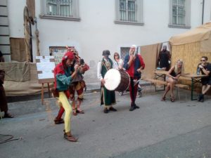 Per due giorni il borgo storico di Asti, nella splendida cornice della Torre Rossa e della sua piazza, è tornato medievale con la 19^ edizione di Arti e Mercanti e si è calato nelle atmosfere di quell’epoca storica. Il borgo ha vissuto i ritmi lenti di un tempo con tutta una serie di eventi. Un tuffo nel Medio Evo dove Asti si è trasformata per questo fine settimana in un vero e proprio villaggio medievale con spettacoli itineranti, esibizione di arcieri e falconieri e animazioni ispirate ai mestieri del tempo con scene di vita quotidiana. Qui abbiamo trovato il fabbro, l’artigiano che lavora il cuoio, il battitore di monete…Asti ha incarnato per due splendide giornate il borgo tipicamente medievale, dove svetta la sua torre del 400. Il cuore della festa medievale è stato il corteo storico con i figuranti in abiti d’epoca, le esibizioni di arcieri e sbandieratori, i falconieri, i giullari, i musici e i giocolieri. Senza dimenticare gli spettacoli teatrali dei burattini dedicati ai più piccoli. La manifestazione, organizzata dalla CNA che ha riportato in vita un quadro vivente di una tipica giornata medievale, ha confermato la formula collaudata degli altri anni, ma la novità di questas edizione è che ha ampliato gli orari e gli spazi: apertura già dal mattino di sabato, alla presenza delle massime autorità civili e religiose e stands oltre Piazza S. Caterina. Storia e tradizione, animazione e ristoro sono stati i meravigliosi ingredienti di questo penultimo week end di settembre, baciato dal sole per un tuffo tra le colline astigiane. Asti ha offerto come cornice questo borgo tipicamente medievale con la sua splendida torre quattrocentescas che domina la piazza e quest’antico borgo è tornato a rivivere la magia e l’atmosfera di quell’epoca che ancora oggi attrae molti visitatori con colori sgargianti e fastose cerimonie. Asti è una città in cui le rievocazioni storiche la fanno da padrone, soprattutto nel mese di settembre con manifestazioni in costume, con tanto di cortei storici, mercatini artigianali ed esibizioni di sbandieratori e musici. Gli spettatori hanno così potuto immergersi per qualche ora nelle atmosfere tipiche del passato ristorandosi nelle antiche taverne e osterie con sapori prevalentemente di quell’epoca storica.