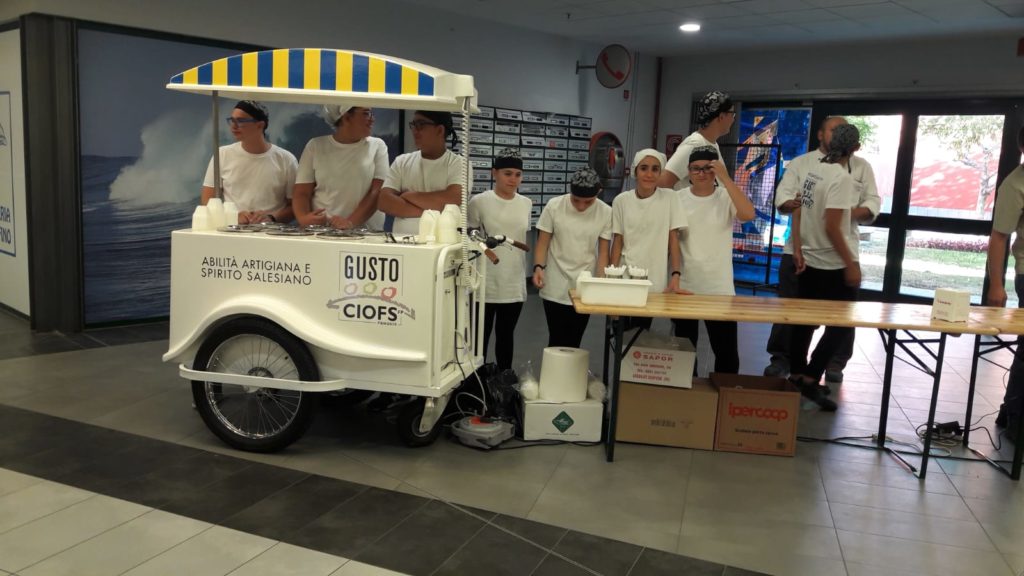Al Gialdo storico un sabato all’insegna dei gelati. Nel pomeriggio, è andato in scena l’Open Day V.A.L.E., il percorso di formazione italo-francese attraverso le eccellenze in pasticceria e gelateria. Gli allievi del corso di gelateria del CIOFS di Chieri hanno offerto a tutti i visitatori del Gialdo una degustazione gratuita dei loro gelati. Una degustazione di gelato di eccellenza gratis, che hanno apprezzato davvero in tanti. Nelle foto, momenti della festa.