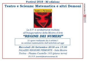 TORINO, PALAZZO DELLA REGIONE: LE “REGINE DEI NUMERI” IN MOSTRA NELL’AMBITO DI “TEATRO SCIENZA FESTIVAL 2018”