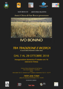 gli Amici della Chiesa di San Rocco nell’ambito di “SAN ROCCO ARTI FIGURATIVE” inaugureranno la mostra di IVO BONINO –“TRA TRADIZIONE E RICERCA”a cura di Elena Piacentini e Valter Vesco. L’esposizione consta di circa venti opere su tela: gestualità silente di Natura e 7 nuove sculture che alludono ai protagonisti del paesaggio