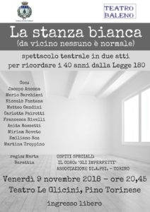 Pino Torinese, venerdì 9 novembre “La stanza bianca” alle Glicini per i 40 anni della Legge Basaglia
