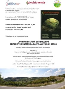Ci sarà l’incontro organizzato in occasione della presentazione del nuovo numero di Picchioverde, in collaborazione con l’associazione in Collina e con il patrocinio dell’Unione di Comuni dell’Alto Astigiano.