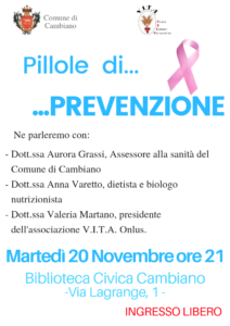 Martedì 20 novembre nella Biblioteca Civica di Cambiano si parlerà di prevenzione .
