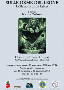 Nei locali dell’Oratorio di San Filippo, dal 24 novembre al 16 dicembre 2018, una mostra esporrà 100 originali di ex libris tratti dalla collezione del chierese Prof. Nicola Carlone, una delle più importanti collezioni di ex libris in Europa.