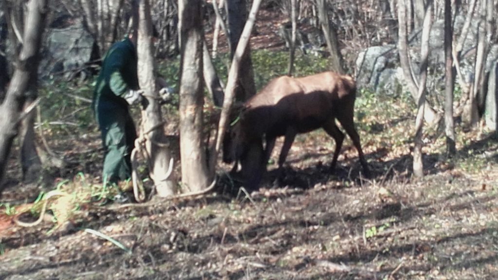 Novalesa, liberato un cervo impigliato in una rete di plastica