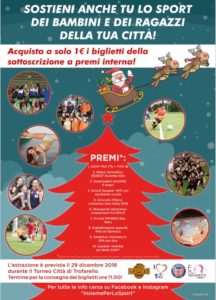 In occasione delle festività natalizie, BEA Leopardi, Trofarello Sport e Cultura, Arte In Movimento e Trofarello Calcio organizzano una sottoscrizione interna a premi!Lo scopo è quello di raccogliere fondi per le attività delle associazioni, di sostenere lo sport di bambini e ragazzi delle città nelle quali queste associazioni operano e sviluppare progetti rivolti ai giovani.Ad ogni tesserato/a della Associazioni organizzatrici verrà consegnato un blocchetto da 10 biglietti da €1 ciascuno che potrà vendere ad amici, parenti, vicini di casa, conoscenti o chiunque altro. Inoltre sarà possibile trovare i biglietti anche in diversi negozi e locali del territorio che saranno comunicati nei prossimi giorni. Insomma davvero chiunque potrà partecipare!Il culmine dell’organizzazione verrà raggiunto con l’estrazione, che avverrà sabato 29 dicembre 2018 presso il PalaPertini di Trofarello, in occasione del 6° Torneo “Città di Trofarello”.Ovviamente l’elenco premi è ricchissimo. Per farvi venire l’acquolina in bocca, eccolo:1°. SONY PS4 1Tb + FIFA 192°. Robot domestico I ROBOT Roomba 6803°. Smartphone Huawei P smart  4°. Sono S Speaker Wifi con assistente vocale 5°. Girocollo Miluna collezione miss Italia 2018 6°. Stampante istantanea smartphone FUJIFILM  7°. Droide SPHERO Star Wars 8°. Digitalizzatore appunti Wacom Bamboo 9°. Smartbox Giornata in SPA per due 10°. Speaker wireless portatile SONY Dei premi tanto belli quanto desiderati, dei bellissimi regali di Natale che potreste provare a farvi. Il regalo più bello però, sarà quello che farete ai giovani della vostra città, aiutando concretamente le associazioni che si occupano dello sport di bambini e ragazzi!
