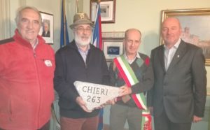 in occasione del centenario della Grande Guerra, nel mese di novembre il Comune di Biella aveva richiesto al Comune di Chieri di donare una pietra (misura massima 40×30 cm) con inciso il nome del Comune (Chieri) e il numero dei Caduti della Prima Guerra.Il Sindaco ha coinvolto tre Associazioni d’Arma ( ANA – Associazione Nazionale Alpini, ANMIG – Associazione Nazionale Mutilati e Invalidi di Guerra, ONCSC – Opera Nazionale per i Caduti Senza Croce) che hanno favorevolmente accolto la richiesta di donazione e provveduto, a loro carico, a reperire e far incidere la pietra.Ieri, presso l’Ufficio del Sindaco, è stata firmata a quattro mani la lettera che accompagnerà la pietra a Biella nei prossimi giorni, fisicamente portata dai membri delle Associazioni. Il prossimo 17 marzo 2019 avverrà a Biella l’inaugurazione dell’ area pavimentata presso la quale verrà collocata la pietra di Chieri insieme a tante altre e l’Amministrazione Comunale sarà presente.