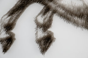 «Tutto questo è come un rituale, un meccanismo zen. I Vedanta. Stare nel qui e ora». Mentre i corpi degli spilli creano ombreggiature, aloni, pendenze che riproducono le sfumature di un’intenzione pittorica viva e meticolosa, le teste degli spilli, invisibili all’occhio e poste nel retro del quadro, giacciono come arazzo nascosto, interiore. Spilli sotto la tela. Una testimonianza ritmica di gesti che durano un secondo. Un attimo. O come dicevano più precisamente i latini: un temporis punctum.