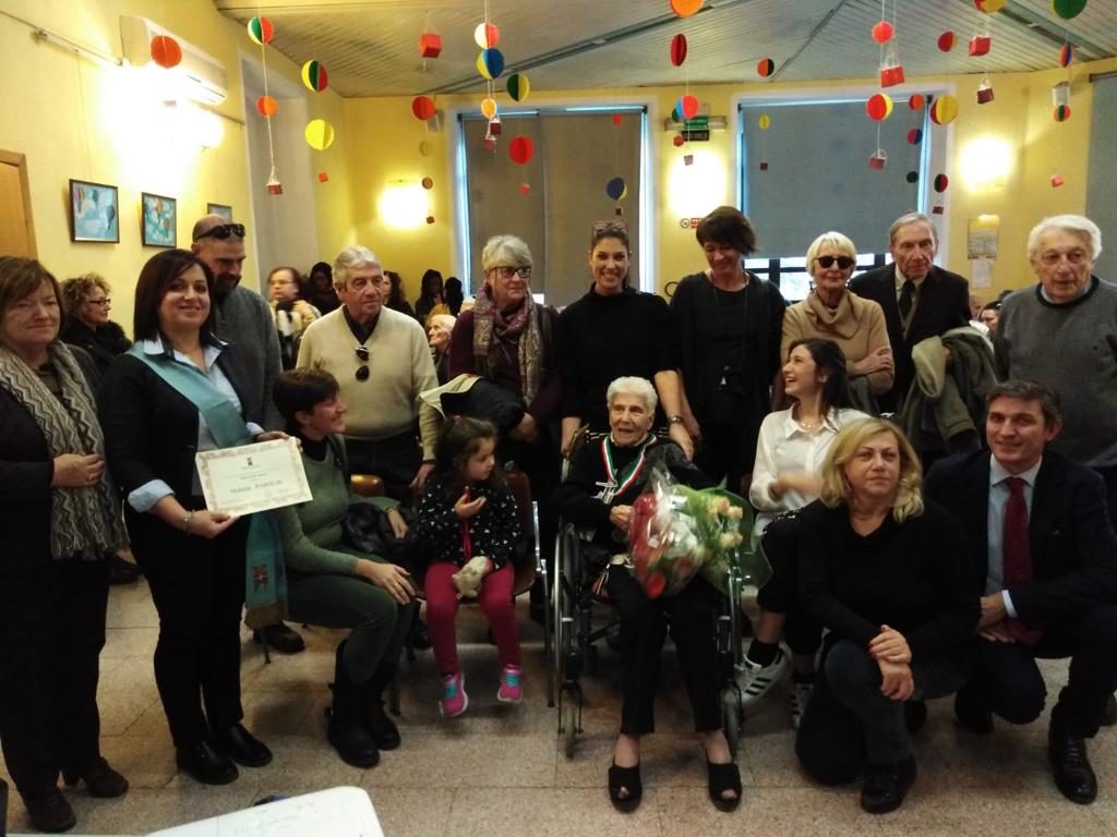 Nella foto: la neo centenaria con le autorità e parenti presso la Casa di Riposo Città di Asti