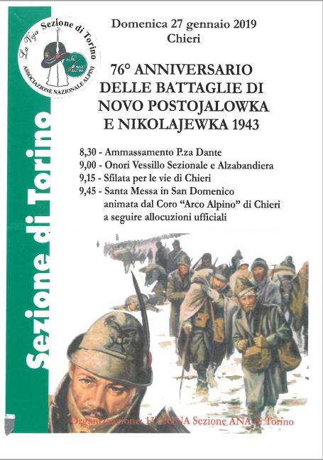 Chieri, gli Alpini ricordano l’anniversario della battaglia di Nikolajewka di Redazione · 23 Gennaio 2019 Visto da: 80