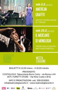 Continua la“Mezza Stagione”, il cartellone della stagione invernale del Teatro Municipale di Costigliole d’Asti”,Dopo i primi due appuntamenti con “tutto esaurito”, un ricco programma anche a febbraio. ...